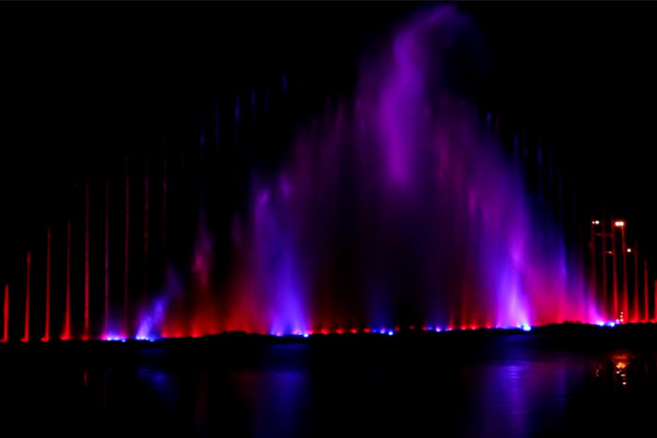 水幕:高壓水霧形成 “流動屏幕”,光影與水花融合(hé),適(shì)配湖泊、噴泉、河道。
